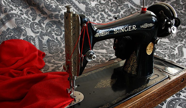 Hy loer deur ‘n skrefie in die gordyn en sien vir Ebeth, met haar stofjas aan agter die Singer naaimasjien wat sy behendig met haar voete trap om die wielietjie aan die kant te laat draai.